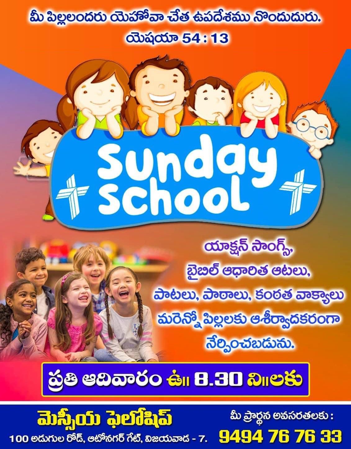 We have two Sunday services: the first service starts at 8:30am and the second Service starts @6:00pm. Messiah Fellowship is a thriving community of faith believers in Vijayawada. We extend our invitation to people from all walks of life to come and participate in our worship.